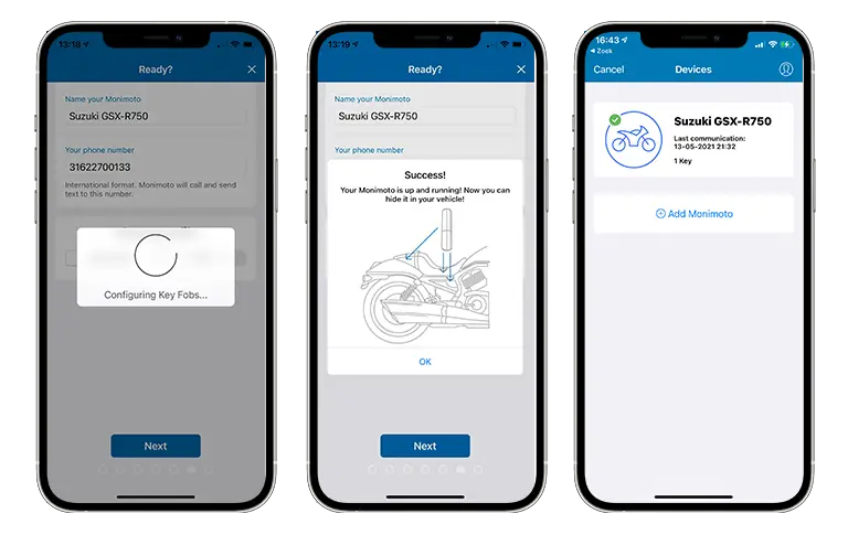 De MoniMoto is een alarm- en volgsysteem voor je motor. Het systeem bestaat uit een tracker (die plaats je in je motor), een keyfob (die draag je bij je) en een app. De tracker werkt op basis van GPS, accelerometer, GSM en Bluetooth. Door deze technieken krijg jij het direct te weten als je motor bewogen wordt of in beweging is. De installatie is enorm gemakkelijk, functioneel en – zover ik heb ontdekt – betrouwbaar.